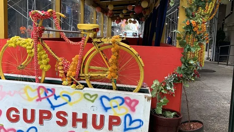 From its initial opening in 2018, the highly-regarded Indian restaurant GupShup has been rich with design details: lovely light fixtures, jewel-hued textiles, vibrant art and a wall of black and white glamour shots among them. Diners are so spoiled for effortless snapshots here that it’s easy to overlook GupShup’s premier Instagram Thing: its bicycles.
